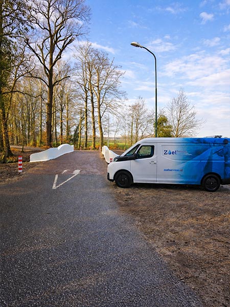 Wanneer een opdrachtgever kiest voor een emissievrije uitvoering, zetten wij elektrische bedrijfswagens in die zijn voorzien van accu-aangedreven hogedrukinstallaties. Met deze installaties reinigen wij bruggen en civiele objecten zonder uitstoot van CO₂, stikstof of andere schadelijke stoffen. In deze emissievrije inzet maken wij geen gebruik van dieselmotoren, aggregaten of andere brandstofgedreven systemen, waardoor de werkzaamheden volledig emissievrij worden uitgevoerd.